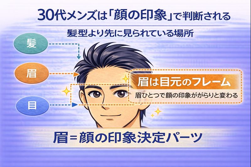 人は無意識に相手の感情や健康状態を、目まわりから読み取ろうとします。つまり眉は、顔の印象を決めるフレームです。ここが整っていないと、どれだけ髪型を整えても完成しません。