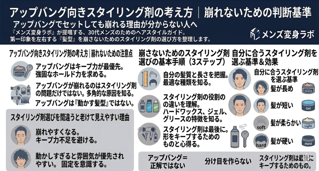 アップバング向きスタイリング剤の役割の違い